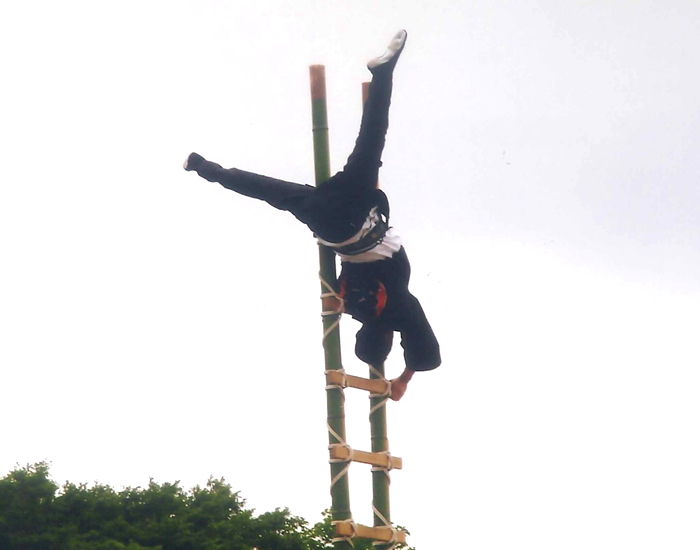 古来から伝わる鳶の伝統文化を守り、技を伝承し「梯子乗り」や「纏振り」など
